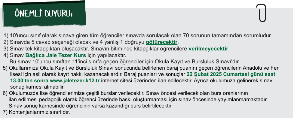 Bağlıca Kurs Bursluluk Sınavı
