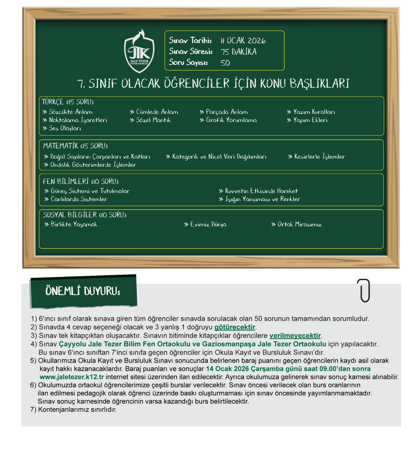 7.SINIF Olacak Öğrenciler İçin Konu Başlıkları