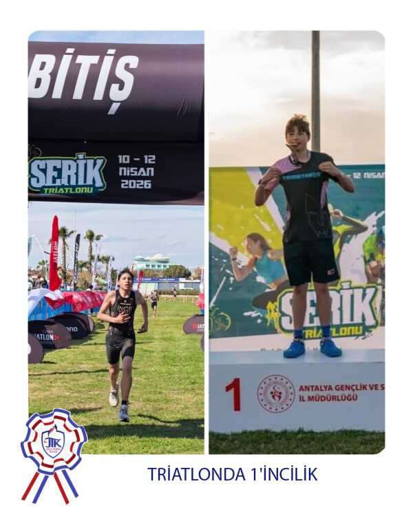 Triatlonda 1'incilik Ortaokul 20 Nisan 2026 Jale Tezer Koleji Gop Yerleşkesi 8.sınıf öğrencimiz Berkay, Türkiye Triatlon Federasyonu Serik Triatlonu Türkiye Şampiyonası 14 yaş grubu 1'incisi olmuştur. Öğrencimizi tebrik ediyor ve başarılarının devamını diliyoruz. TRİATLONDA 1'İNCİLİK
