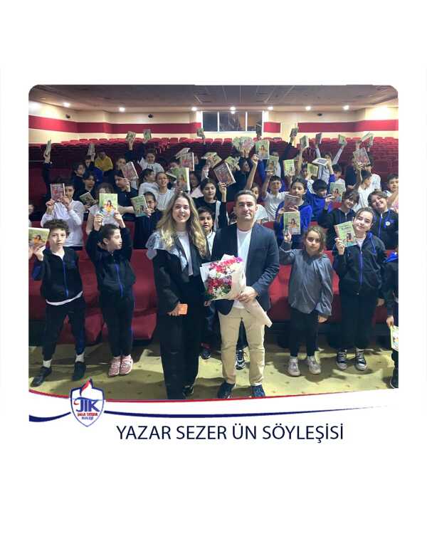 Bu anlamlı etkinlikte yazarımız, öğrencilerimizle kitaplarının arka planı ve yazarlık serüveni üzerine ilham verici bir söyleşi gerçekleştirdi ardından çocuklarımızın kitaplarını imzaladı.