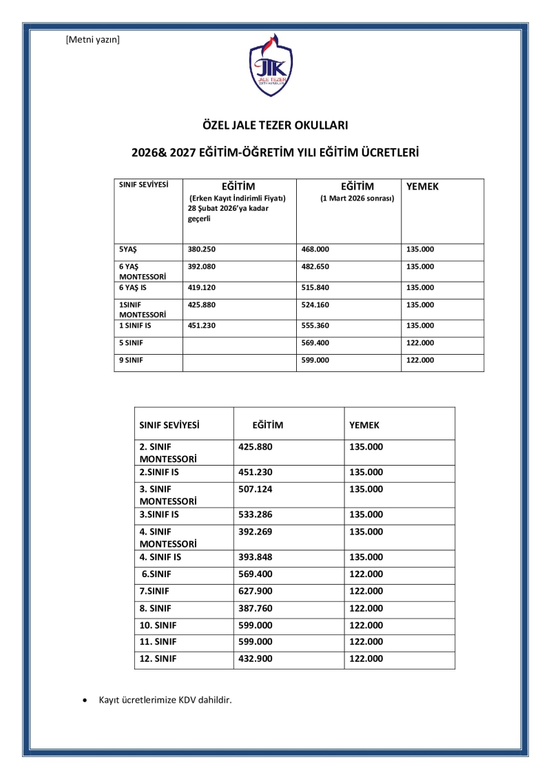 Anasınıfı ve İlkokul Aday Öğrenci Ön Kayıt Formu